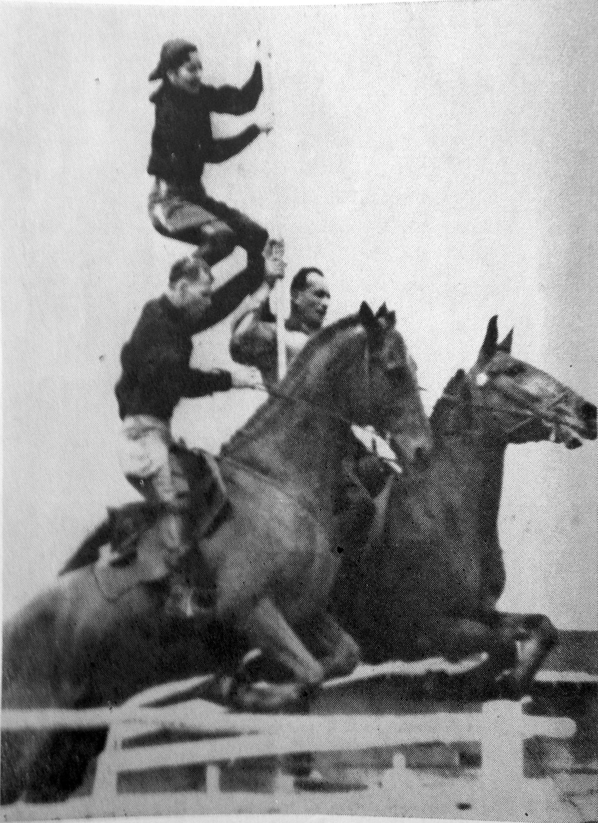 Ludmilia, Soloduhin’s wife, atop two cossacks. Soloduhin on left.