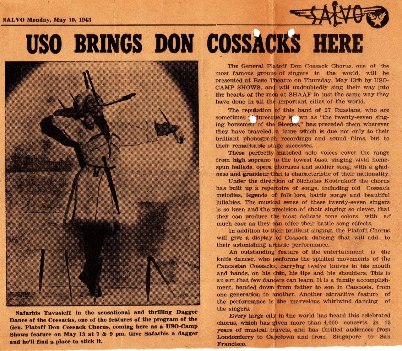 Press clipping dated May 10, 1943. Image courtesy of